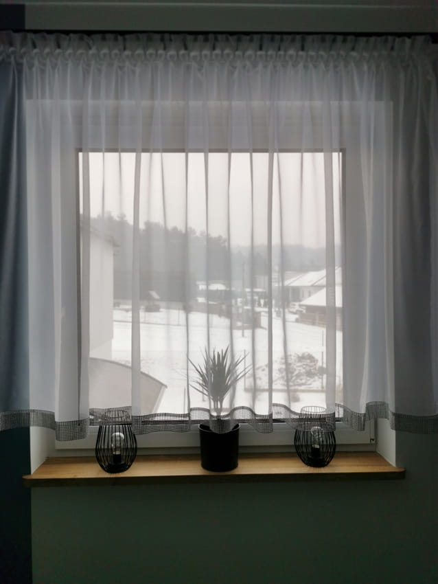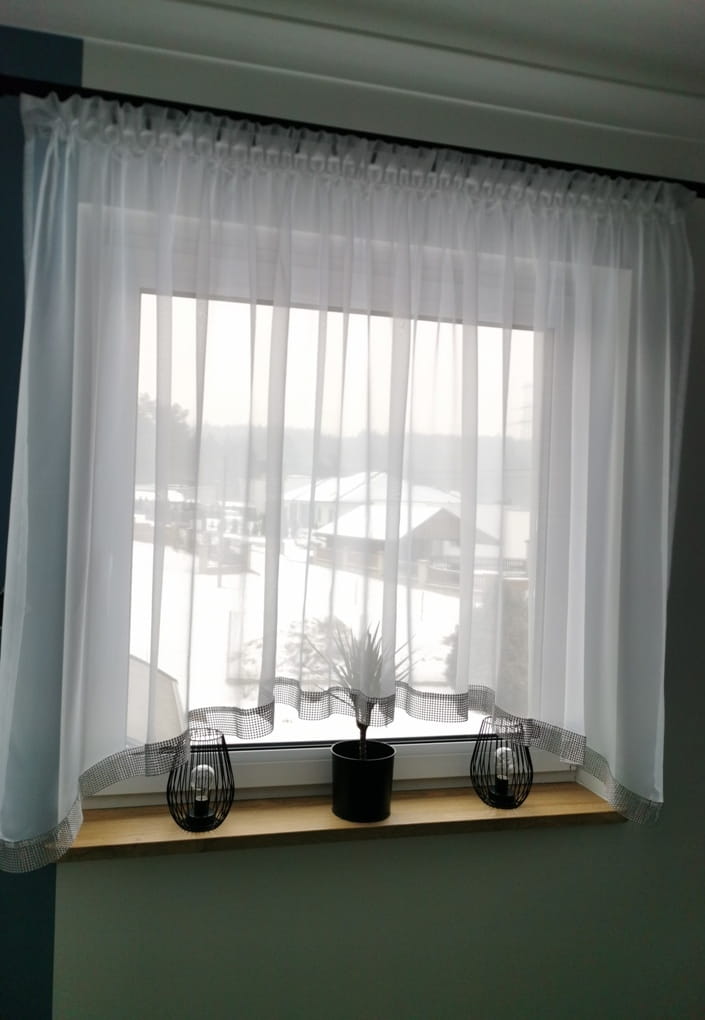 Możliwość uszycia firany z woalu gładkiego lub kreszowanego w kolorze białym.