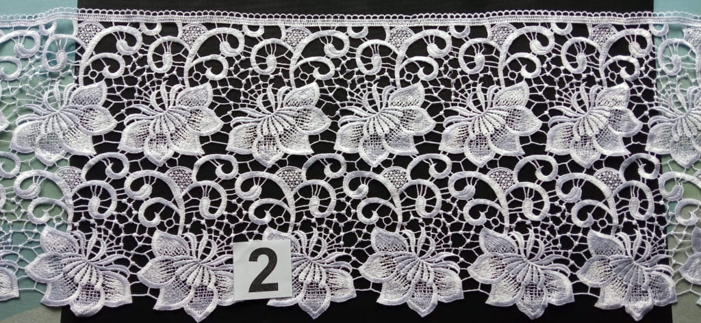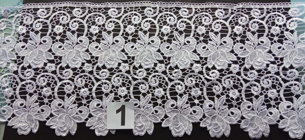FIRANKA wykonana z woalu obszyta gipiurą 30 cm, na taśmie smok 1:2.o szer 5 cm