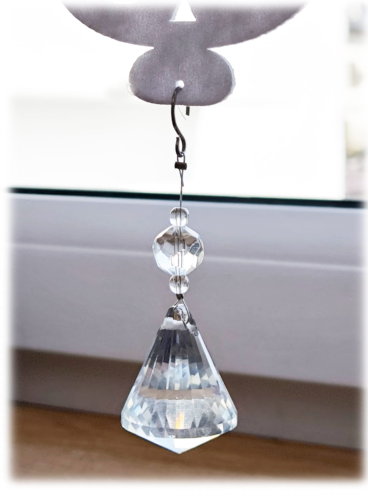 w zestawie: plastikowy drążek usztywniający, kryształ z zawieszką