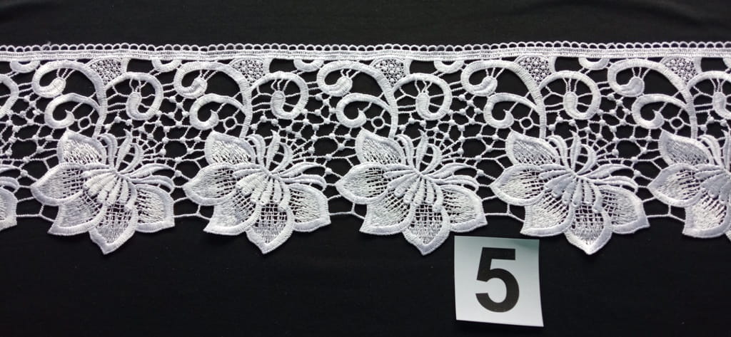 Panel uszyty ze śnieżnobiałego woalu, wykończony gipiurą szerokości 10 - 15 cm.