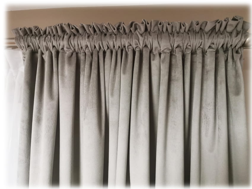 Zasłona wykonana z miękkiej welurowej tkaniny.