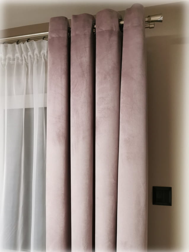 Zasłona wykonana z miękkiej welurowej tkaniny.