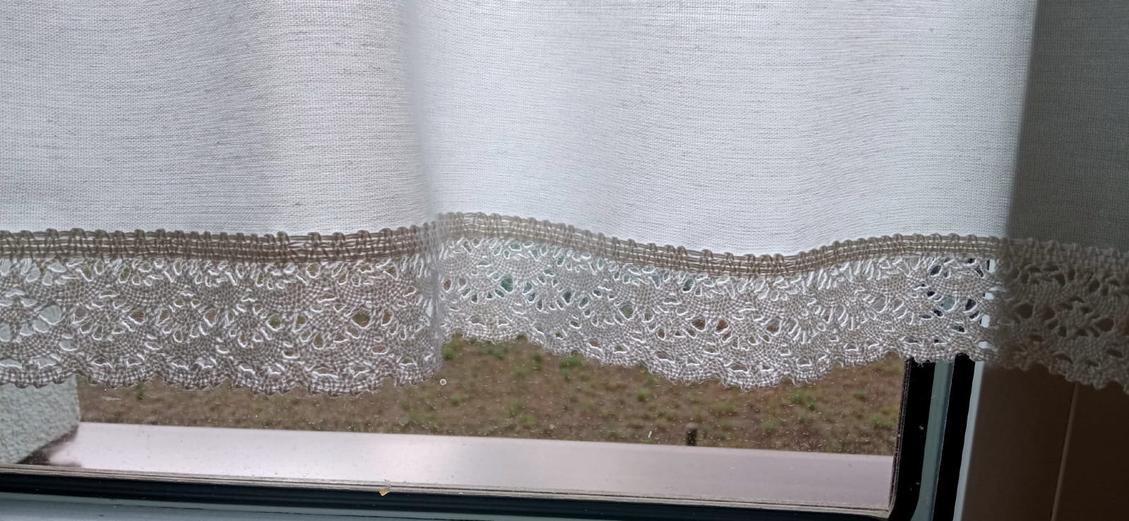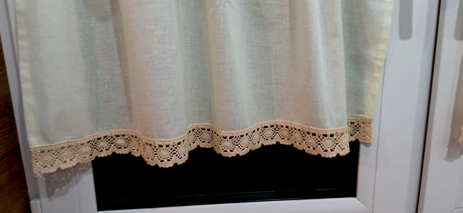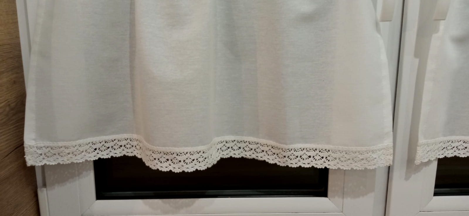 Dół zazdrostki obszyty koronką bawełnianą.